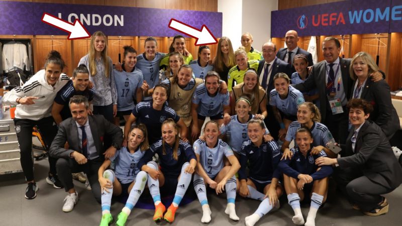 Efter Spanien havde sikret sig pladsen i kvartfinalen gik prinsesserne ned i omklædningsrummene for at møde spillerne og fejre sejren med dem.