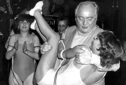 Simon snakkede løs hvor som helst. Her ved udstigningen fra sin Mercedes 600 med nogle af morgenbolledamerne...