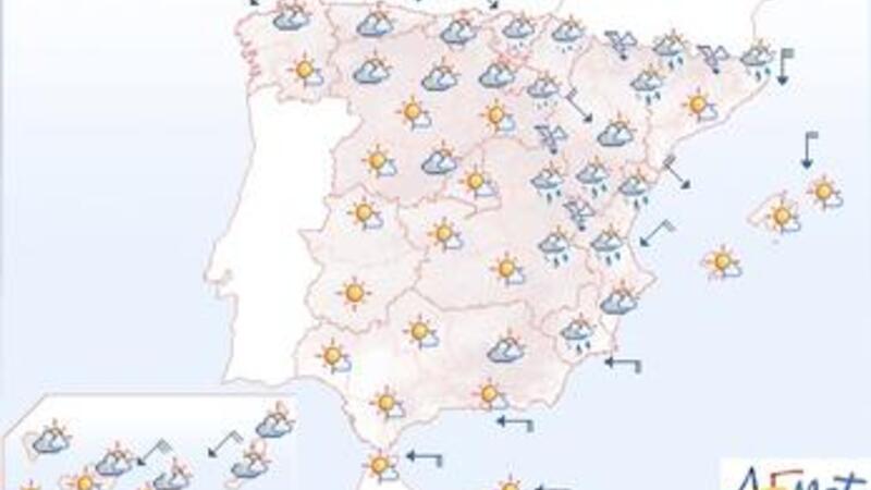 Mandag og tirsdag delvist skyet og omkring 30 grader, onsdag og torsdag klart, fredag igen mulighed for nedbør.