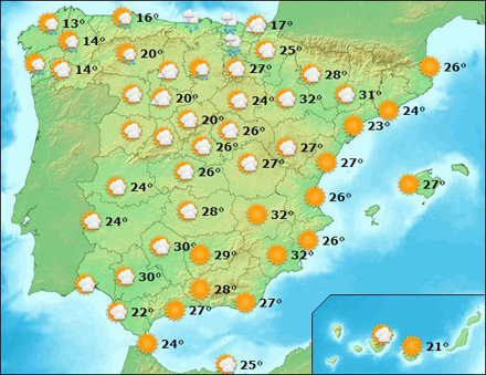 Vejr i Spanien, mandag kl. 15:00