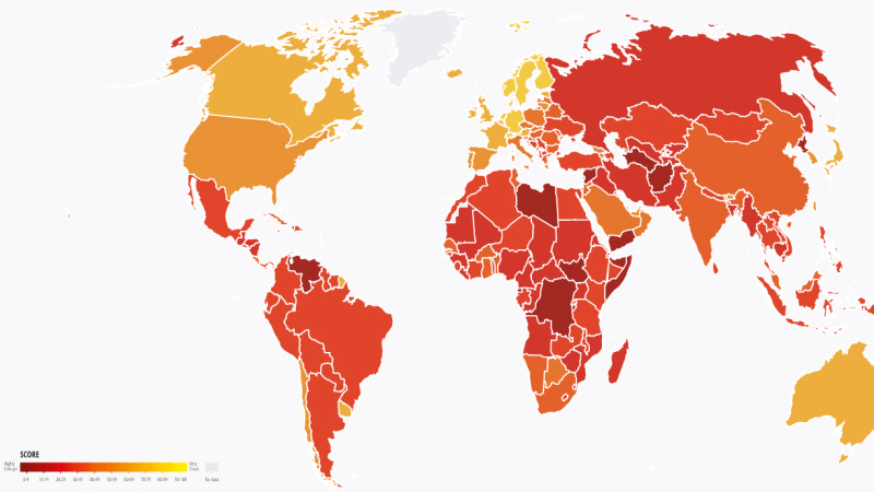 'Transparency International' har i forbindelse med offentliggørelsen af den årlige oversigt sendt advarsler til mange lande.