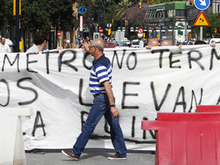 Anlægsarbejdet ved Callejones del Perchel er stort set gået i stå. Kun fem personer arbejder lige nu på at færdiggøre en strækning på 716 meter, og det fik i går indbyggere og lokale forretningsfolk til at gennemføre en protestaktion mod det strandede metrobyggeri.