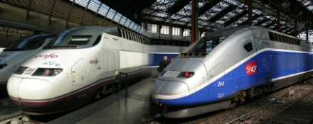 Rejsen finder enten sted med spanske RENFE-AVE eller franske SNCF-TGV