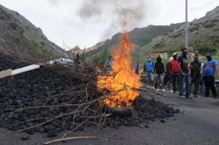 De blokerede vejen med dæk, sten og affaldscontainere og satte ild til bunkerne, og først om aftenene var trafikken tilbage til normalen på AP-66, A-6 og N-VI.