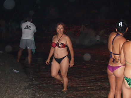 En symbolsk handling, der oprindelig skyldes overtro om, at det ville øge kvindernes frugtbarhed. Det ser ret skægt ud, når havet bliver fyldt op med mennesker på et tidspunkt, hvor solen for længst er væk.