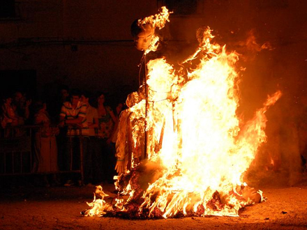 En af de mange traditioner ved Sankt Hans-festerne i Spanien er at springe over bålet, når det er reduceret til gløder. Efter sigende slipper man på den måde af med de onde ånder.