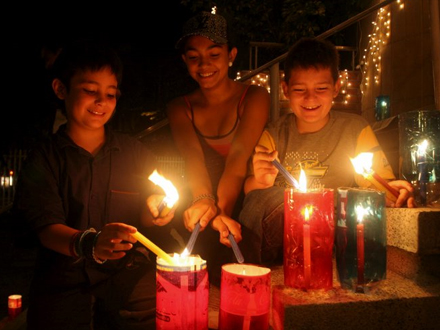 Børnene er en god hjælp, når alle lysene skal tændes