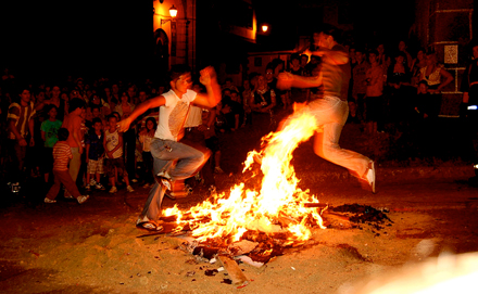 En af de mange traditioner ved Sankt Hans festerne i Spanien er at springe over bålet, når det er reduceret til gløder. Efter sigende slipper man på den måde af med de onde ånder.