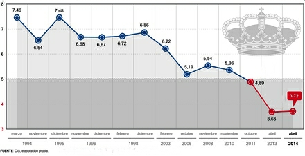 Det er blevet sagt, at Juan Carlos traf beslutningen om at abdicere på sin 76-års fødselsdag den 5. januar i år. Måske var en medvirkende årsag den undersøgelse, som dagbladet El Mundo i samarbejde med Sigma Dos offentliggjorde i anledning af fødselsdagen.