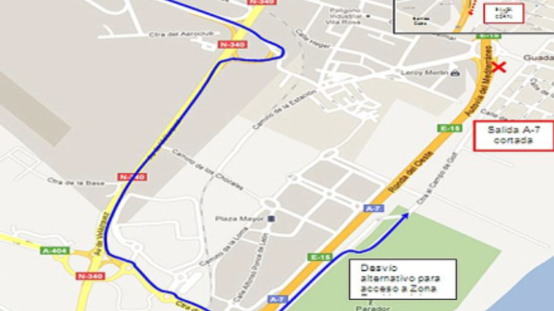 Trafikanter til lufthavnen skal bruge den gamle landevej MA-21, mens beboerne i Guadalmar kan benytte afkørslen ved El Parador de Golf i Guadalmar.