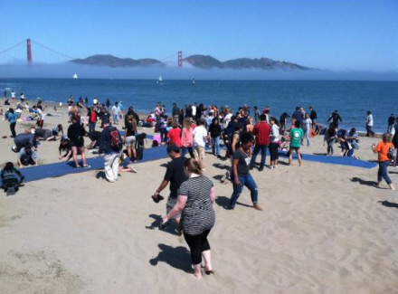 Masser af folk leder efter pengene gemt på en strand i San Francisco