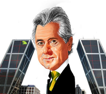Karikatur af Miguel Blesa vd KIO-højhusene i Madrid