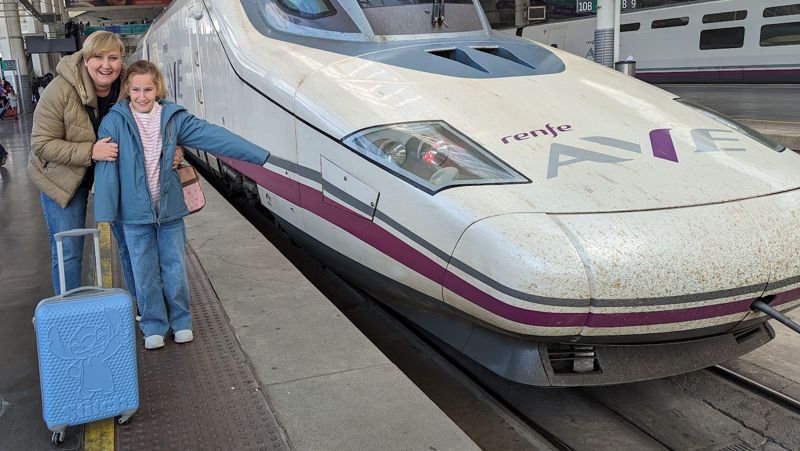 MARTS 2024: Her sidder jeg med min datter og barnebarn i højhastighedstoget fra Málaga til Madrid.