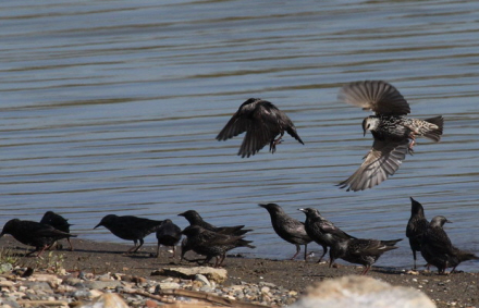 Stære nyder livet i strandkanten