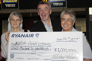 Ryanair havde udlovet en præmie på en million cents – eller 10.000 euro - til passager nummer 100 million på en rute til eller fra Italien.