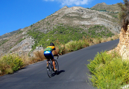 Turen fra Almuñécar til naturparken startede uden de store stigninger, indtil vi kørte under motorvejsbroen.