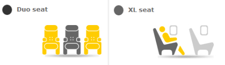 Sædevalg koster fire euro på række 15-31 og seks euro på række 3-11. Sæde med ekstra benplads (XL) koster 14 euro, og vil du forkæle dig selv ekstra, kan du på række et bestille et 'Duo seat', hvor der ikke sidder nogen ved siden af dig. Her får du også fri drink og snack, men skal til gengæld betale 70 euro for luksussen.