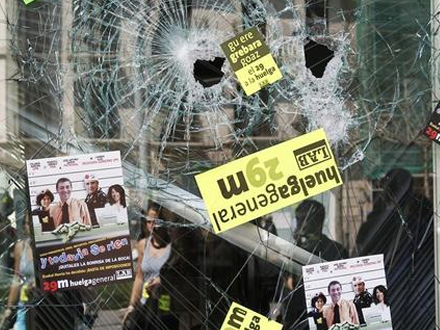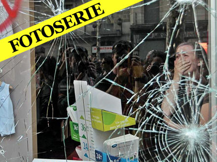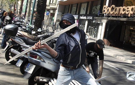 Unge er ved at smadre et vindue i Corte Inglés