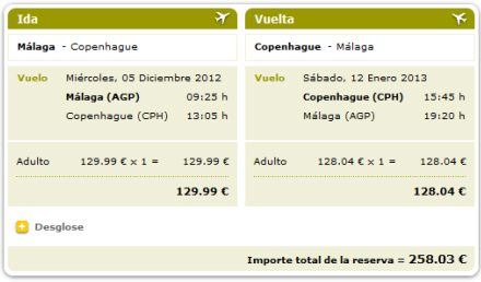 Afgang Málaga kl. 11:30 – ankomst København kl. 15:10