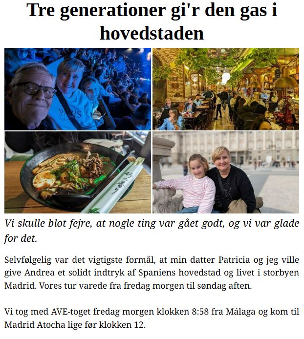 Normalt skrives artiklerne af Kathrine, Carmen og Torben her på redaktionen. Dels med udgangspunkt i egne oplevelser - hvor de er meget personlige - og dels efter research i områder, hvor vi ikke selv har været.