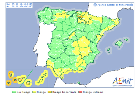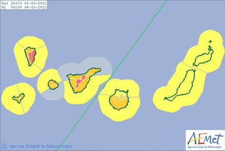 Værst ramt er den nordlige og østlige del af El Hierro, La Palma, La Gomera, den nordlige del af Tenerife og den østlige del af Gran Canaria, hvor der er faldet 86 mm nedbør.