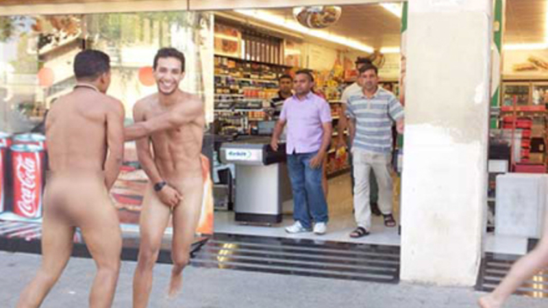 Fotoet af de nøgne italienere ved et lokalt supermarked i Barceloneta er blevet brugt flittigt af de spanske medier til at skildre problemerne i nabolaget.