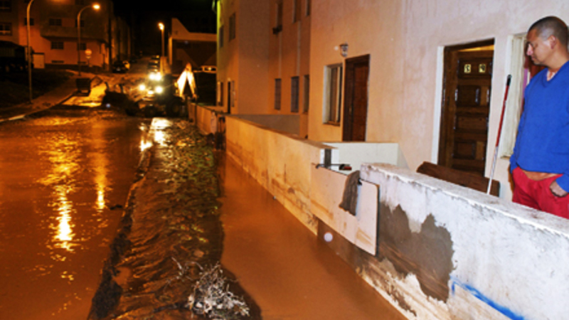 I Mogan Kommune på Gran Canaria er flere huse og butikslokaler blevet oversvømmet. Her rådede myndighederne i går eftermiddag indbyggerne til at blive inde. Landevej GC-200 var i går en overgang spærret for trafik på grund af jordskred, men er nu farbar igen.