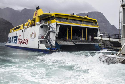 Det var svært for færgerne at lægge til. Her er det Fred.Olsen Express som ser ud til at have lidt besværligheder