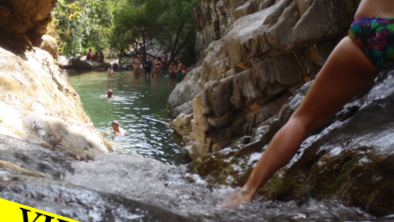 Men det er de færreste, der har taget turen mod strømmen op ad vandløbet. Efter et par hundrede meter er der en lille lagune med krystalklart vejr. Herfra kan du svømme og kravle videre op gennem terrænet og klipperne for til sidst kaste sig ud fra syv meters højde. Du kan også blive her og nyde vandet.