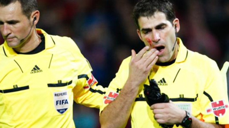 'Paraguas' blev til ‘para-linjevogter’ ved stillingen 2-1 til hjemmeholdet Granada, og flere spanske medier rapporterer i dag, at en tilskuer er blevet anholdt for at smide paraplyen mod linjevogteren. Faktisk ramte den så godt, at linjevogteren kom til at bløde, og da dommeren så det, afbrød han konsekvent kampen og gik i omklædningsrummet.