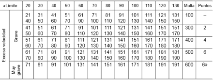 Limite=grænse, grave=alvorligt, muy grave=meget alvorligt, puntos=klip