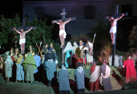 Scenen 'El Calvario' ligger på et højdedrag med to forhøjningen på hver side ud kanten af byen. Foran er der en rummelig esplanade, hvorfra publikum kan høre og se alt, hvad der foregår på scenen uden at skulle rejse sig fra deres stole.