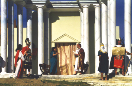 Kulisserne er af afgørende betydning for helhedsindtrykket. De gengiver bygningerne i Jerusalem og skaber den rette stemning.