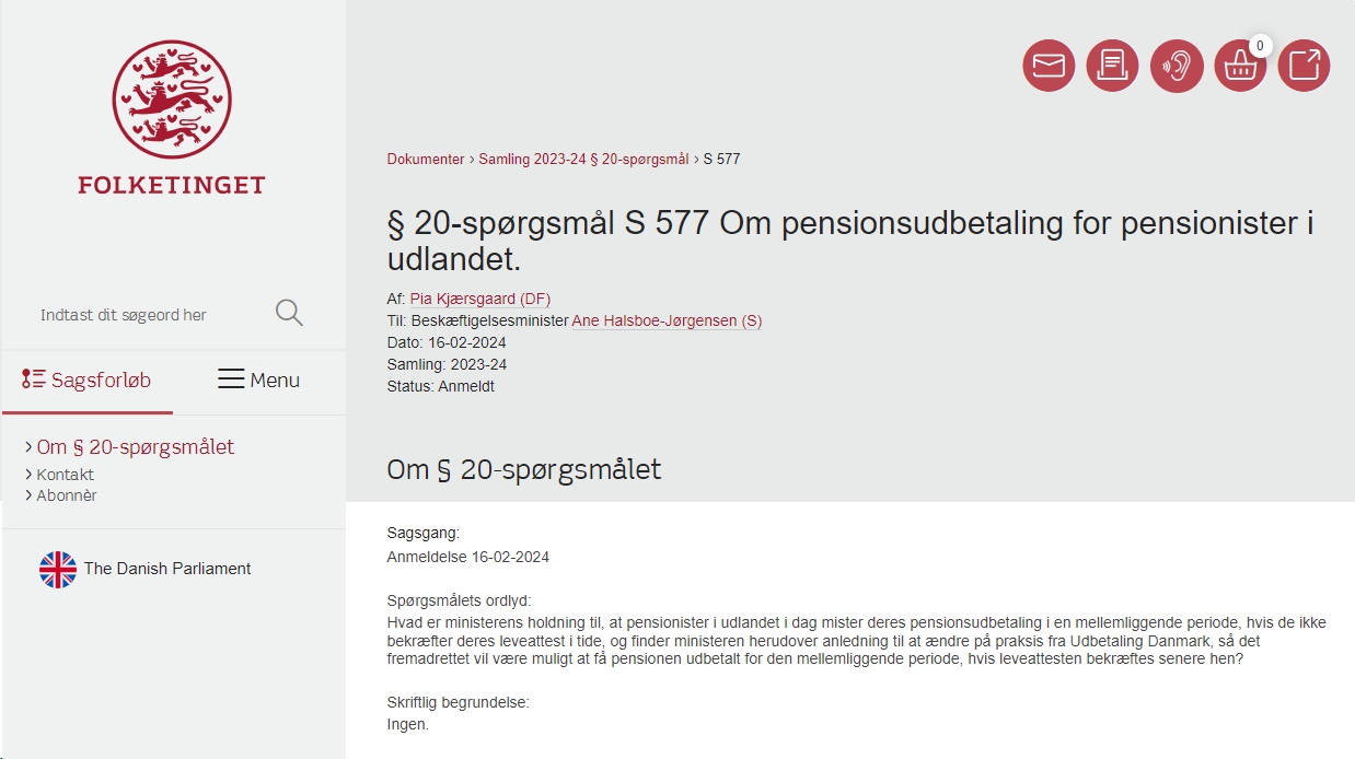På redaktionen bemærkede vi, § 20-spørgsmålet stillet på Folketingets hjemmeside: