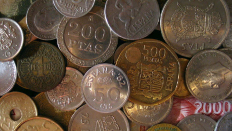 Der ligger pesetas-sedler for 863 millioner euro og mønter for 805 millioner rundt omkring i de spanske husholdninger.