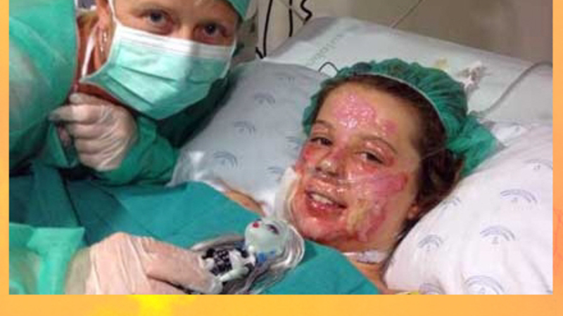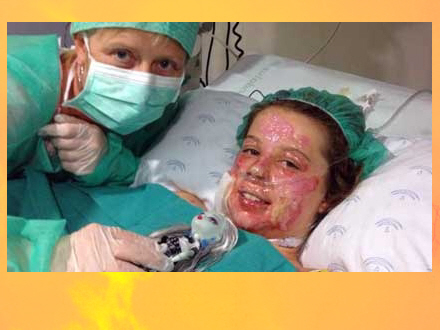 Pige forbrændt over hele kroppen