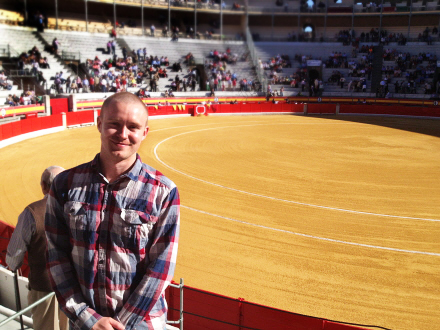 Arenaen i Granada er opført i 1928, og det ses tydeligt, når man kommer ind i den. Den er charmerende, men også noget anderledes end andre steder til større begivenheder. Der er for eksempel ikke sæder, men blot en lang afsats, hvor de enkelte pladser er afgrænset af en malet streg. Og pladsen mellem rækkerne er så trang, at jeg nærmest sidder i futtog med en ældre herre foran mig.