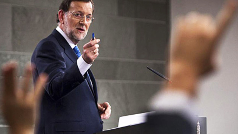 Spaniens premierminister, Mariano Rajoy, undlod at svare på, hvorvidt han ville gøre brug af redningsfonden, selvom han blev stillet spørgsmålet tre gange i træk.