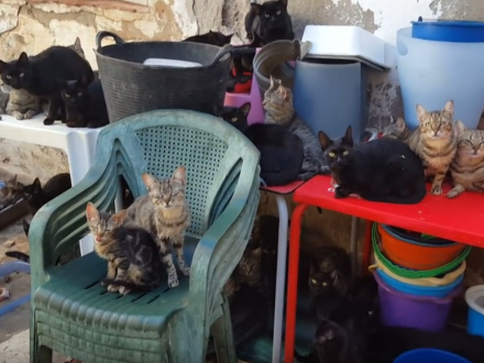 VIDEO: Dyrevenner kan vi aldrig få nok af. Men 101 katte i et hus på 37 kvadratmeter er lige et par stykker for mange.
