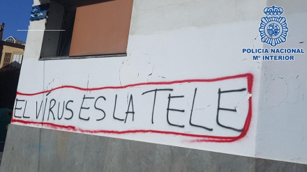 Policía Nacional har anholdt en COVID19-fornægter, der havde malet graffiti på mere end hundrede bygningsfacader. Og der var end ikke ligefrem tale om flot gadekunst.
