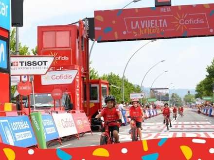 SPORT: Cykelløbet La Vuelta er ikke kun selve cykelløbet. Overalt i de byer, hvor løbet kommer igennem, er der optakter - også for børn. Men i går var en dansker i fokus!