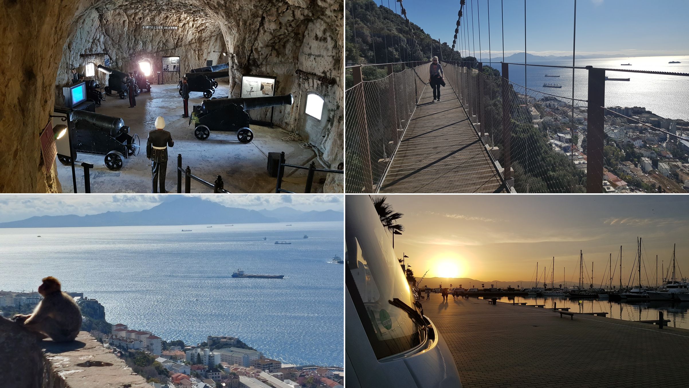 Vi tog turen rundt på øen til fods, så tunneller - der er lavet i alt ca 48 km tunnel siden 1700 tallet og alle i krigsøjemed - udsigtsbastioner, aber, drypstensgrotter, udsigt over strædet til Afrika, Marokko og den spanske enklave Ceuta, gamle kanondtillinger osv.
