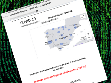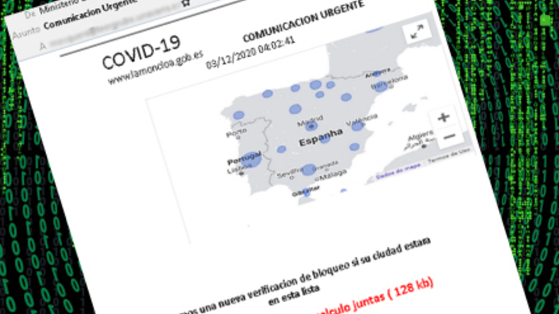 E-mailen sendes fra en adresse, der efterligner regeringsdomænet ‘gob.es’ under emnet "Hastende kommunikation - COVID-19. - [id xxxxxx]", men det kan variere i udseendet.