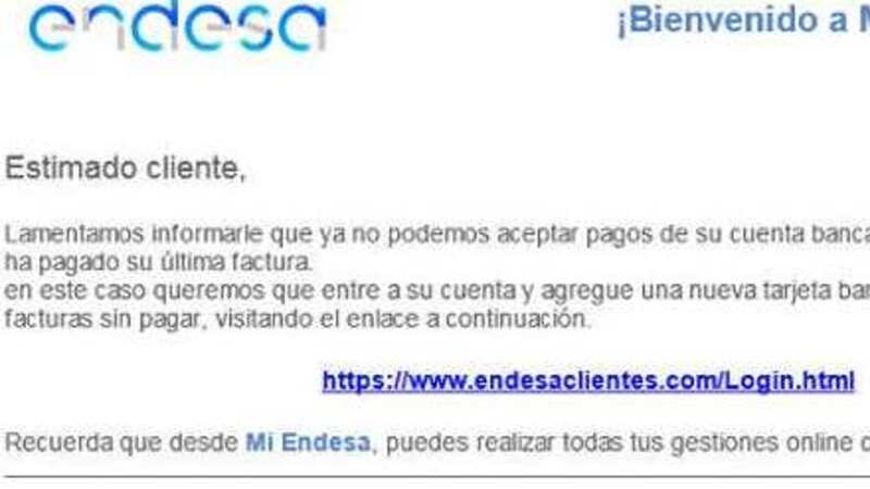 KRIMI: Vær forsigtig med at åbne mails fra Endesa. Henvendelsen kan være “phishing” og blive dyr.