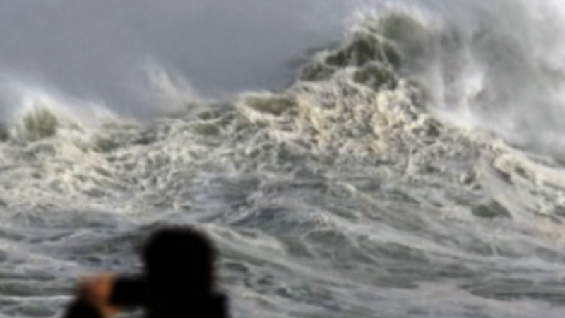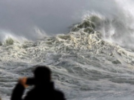 Myndighedernes advarsel var specielt henvendt til de såkaldte 'fotojægere', der sætter deres liv på spil for at få gode billeder af de ekstraordinært høje bølger, som slår mod kysten.