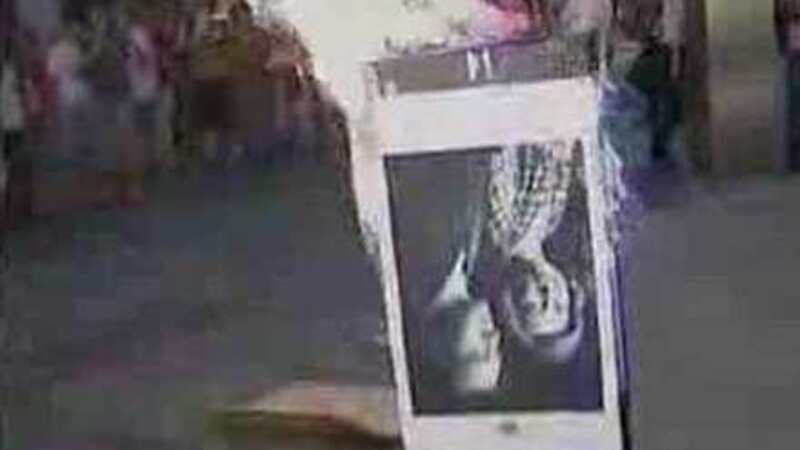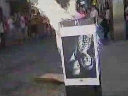 To unge republikanere stillede sig op foran en demonstrerende menneskemængde med et stort billede af det royale par. De vendte det på hovedet, overhældte det med benzin og satte en af de mange brændende fakler til dets ene hjørne.