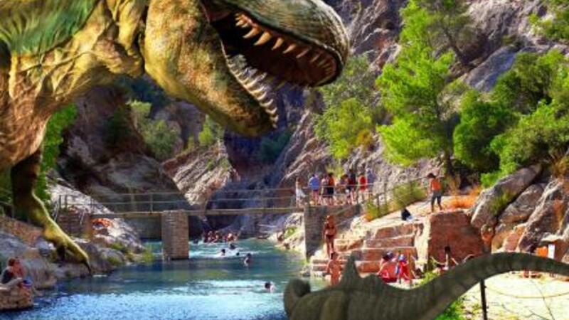 Pukkelryggede dinosaurer, paradisisk naturpøl og smuk by på kanten af klippen.
