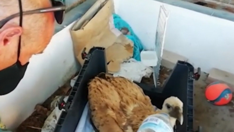 Guardia Civils særlige dyreafdeling, Seprona, reddede forleden en alvorligt dehydreret gåsegrib i Morón la Frontera, Sevilla.