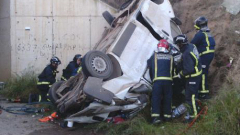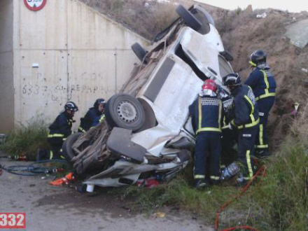 Bilen kørte i rabatten og faldt et par meter ned af en bro, hvor den endte på hovedet, skriver n332.es.
