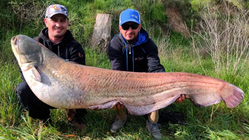 Invasive rovfisk har slået sig ned i store floder i det nordlige Spanien, og mandag fangede to amatørfiskere et eksemplar på 35 kilo og 1,70 meter.